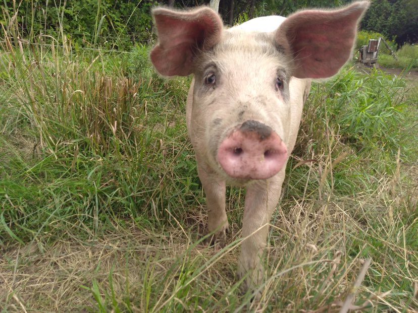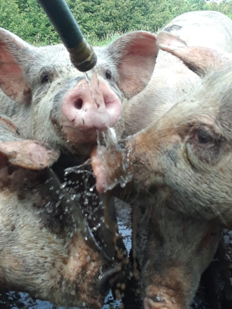 Nous faisons l’élevage de porc au pâturage depuis le tout début, le premier été que nous avons passé à la ferme, c’était avec nos trois petits cochons!